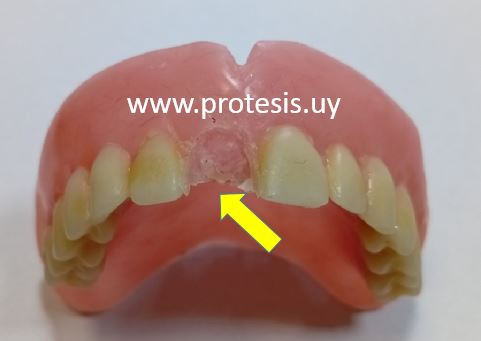 El paladar de la prótesis se fracturó. Se tiene que arreglar el paladar de la prótesis.